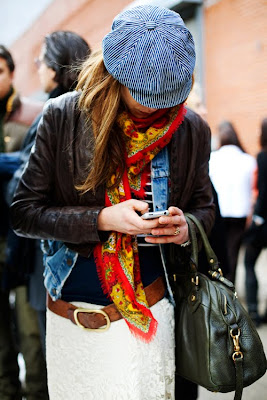 I want/need/desire more vibrancy in my wardrobe right now too. I am seriously at the point where I want to burn my beige coat and brown boots and earth tone scarfs just for the sake of seeing the color of the flames. I think that's why the top image appeals to me so much -- it's that quality of Slavic folklore meets American modern that I find inspiring. There is just a briskness and warmth in the way she is mixing colors and patterns that I so desperately want to add to my dreary winter day wardrobe.