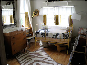 Forget about babies -- I want to live in this nursery! I saw this room first on mustard and sage and could not help going back to it to admire the "baby's first taxidermy" elements, the vintage yellow crib and cloud sheets, the birds!, all the beautiful shades of wood, and the room's gorgeous light (and cute light fixtures). Isn't this nursery such a design inspiration?