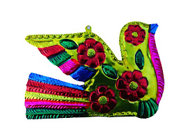 In Oaxaca, Mexico, "hojalata" is a traditional folk art that goes back to the 16th century where artisans hand cut, punch, press, etch, and paint original pieces of art including Christmas ornaments. And I am such a fan of these decorations. They are so bright and colorful, but I especially love how they look when they start to age and fade (like the one in the bottom picture) - it is so much lovelier somehow...