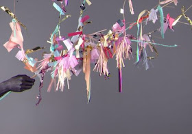 Confetti System... "transforms simple materials such as issue paper, cardboard, and silk into interactive objects that create a point of focus, where memories are made and a spontaneous collaboration with the viewer is sparked. [Confetti System's] creations occupy the space between the ephemeral and the permanent, evoking a sense of nostalgia and lighthearted fun."