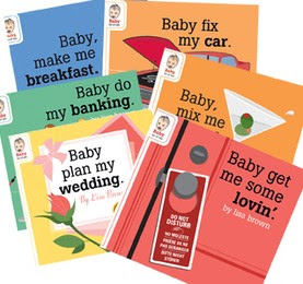 For all the love, affection, joy, blah, blah, blah that Sweet Pea is supposed to provide me - he's not actually going to be of any practical use to me for a while. Or is he? Maybe I'll get him a few of these "Baby, Be of Use" books by Lisa Brown so he can start earning his keep from the get-go (and I think I'll start with this one...).