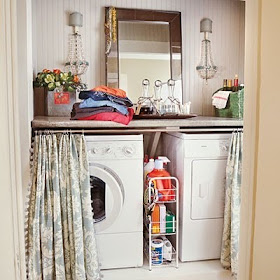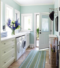 Not too long ago I posted about my love of pretty entryways. Well, here's that companion post that features the other space I'd love to organize in my own home - the laundry room. I'm lucky enough to have a laundry area/hallway, but it looks nothing like these spaces. While mine feels like a dumping ground for dirty clothes, I love how organized, well-stocked, and crisp and clean these laundry rooms are with their white or minty-colored walls. So much promise in these spaces!